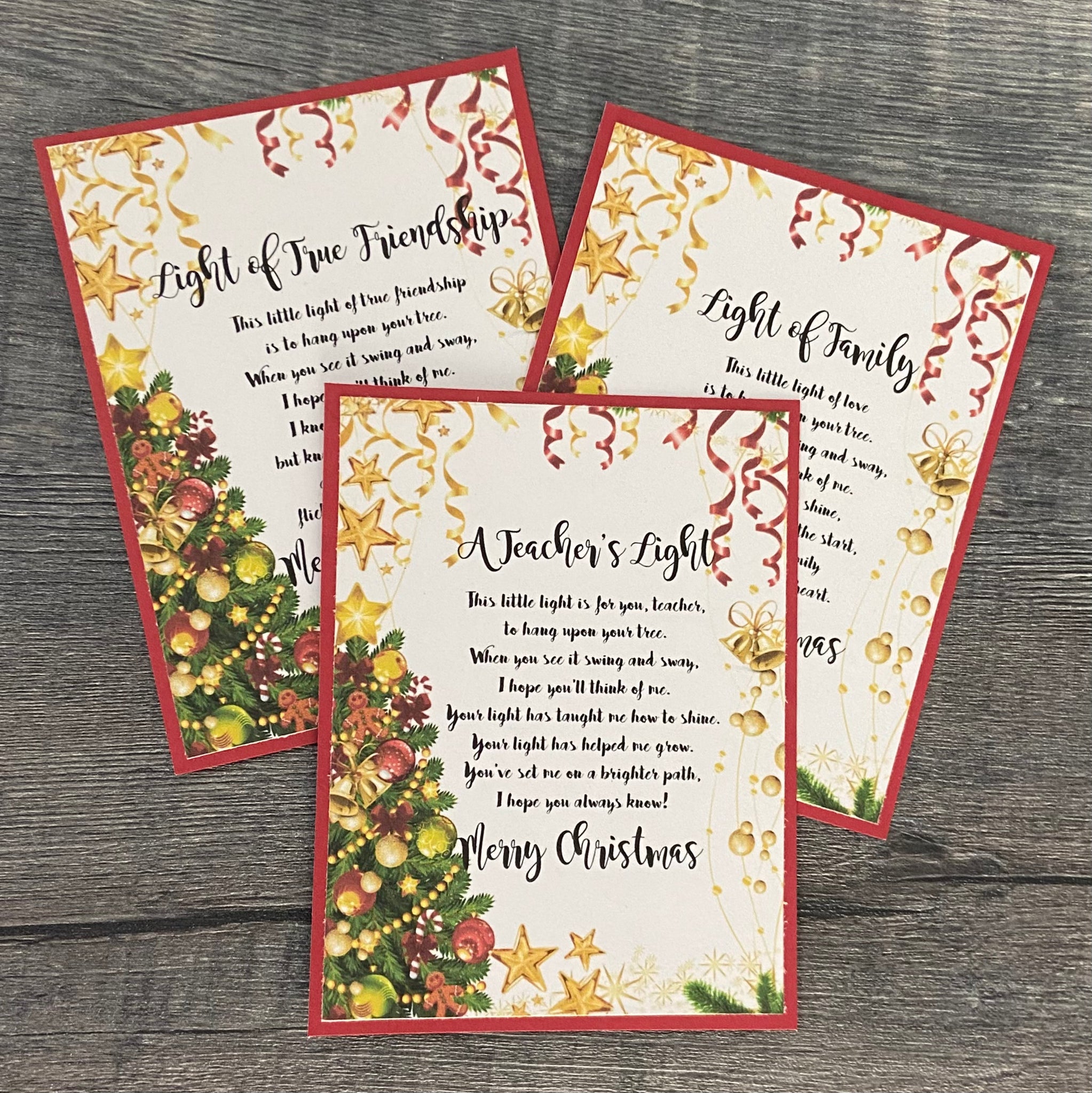 A Teachers Light - This little light is for you teacher to hang upon your tree. When you see it swing and sway, I hope you think of me. Your light has taught me how to shine. Your light has helped me grow. You've set me on a brighter path, I hope you always know!